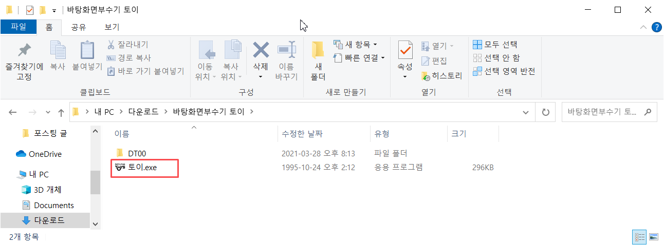 압축풀고 토이.exe 더블클릭해서 실행 하면 됩니다.