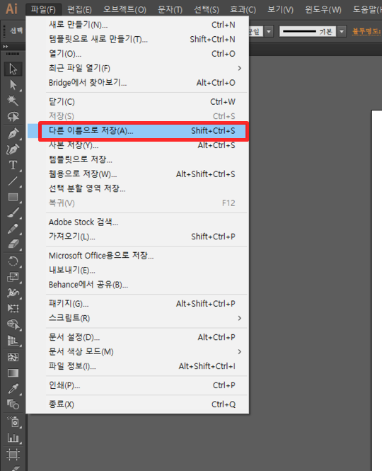 psd에서 ai로 변환해도 파일확장자만 바뀐것이지
