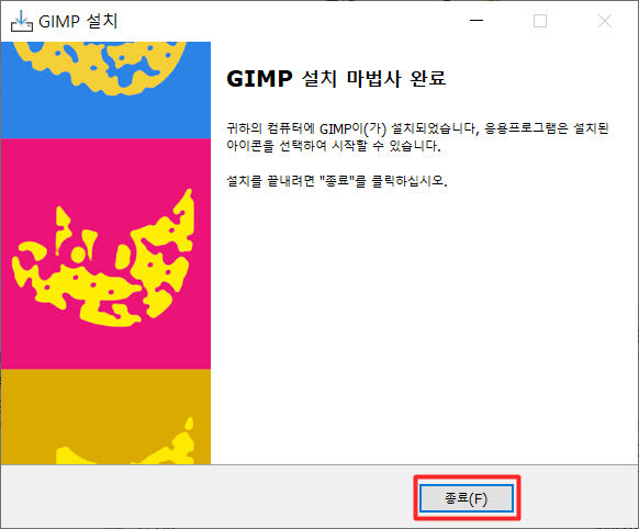 설치가 완료되면 종료 클릭합니다.