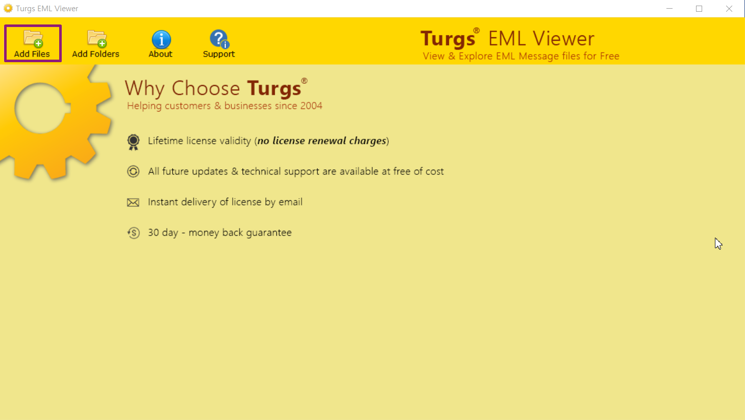 프로그램이 열리면 메뉴에서 “Add File(s)” 또는 “Add Folder” 버튼을 눌러 EML 파일을 불러올 수 있습니다.