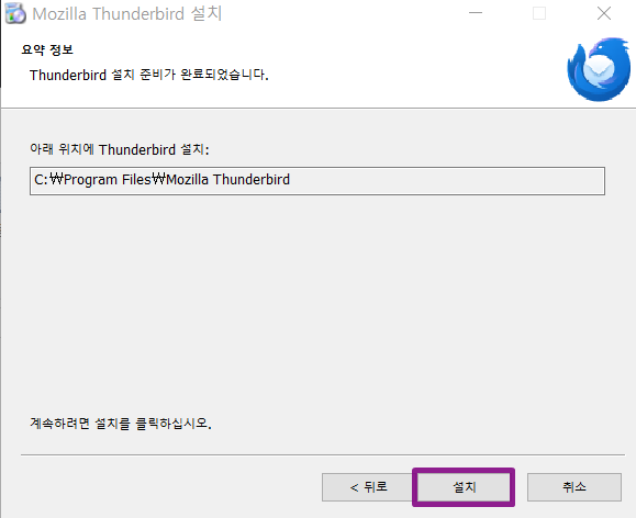 기본적으로 C:\Program Files\Mozilla Thunderbird 경로에 설치됩니다.