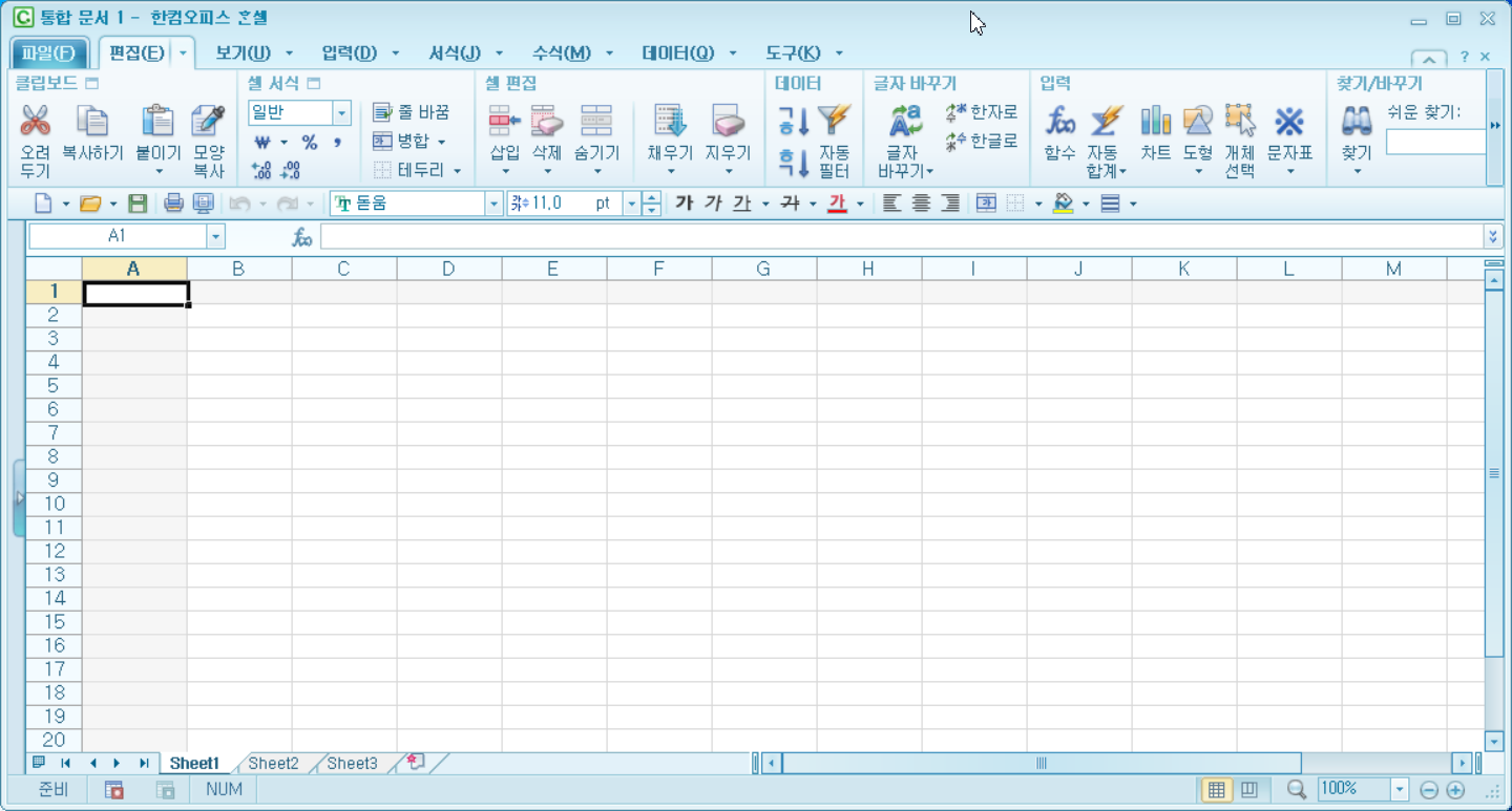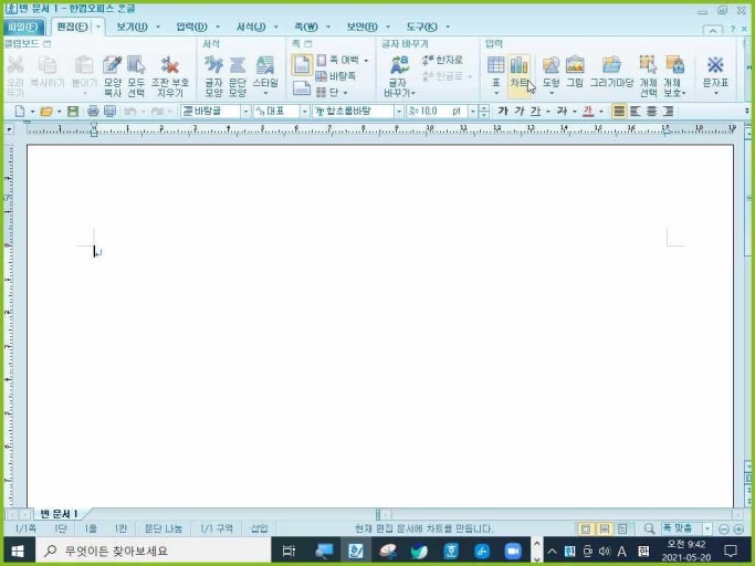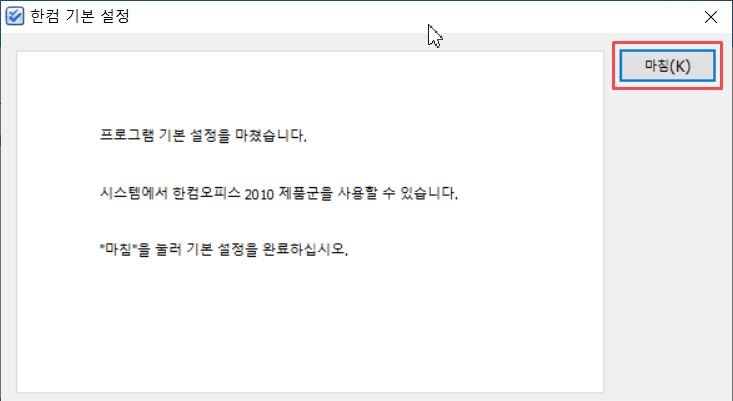 안내창 하단에는 “확인” 버튼을 눌러주시면 바로 한글 2010 메인 화면으로 진입할 수 있습니다.