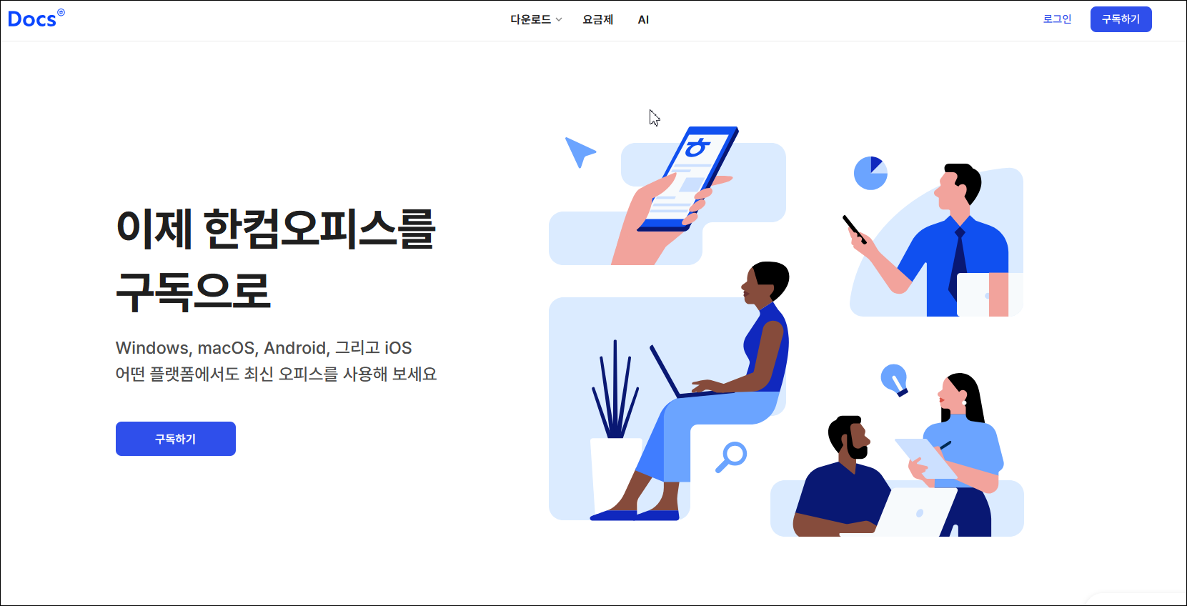 한컴독스 공식홈페이지에 접속하면 다음과같은 화면이 나오는데