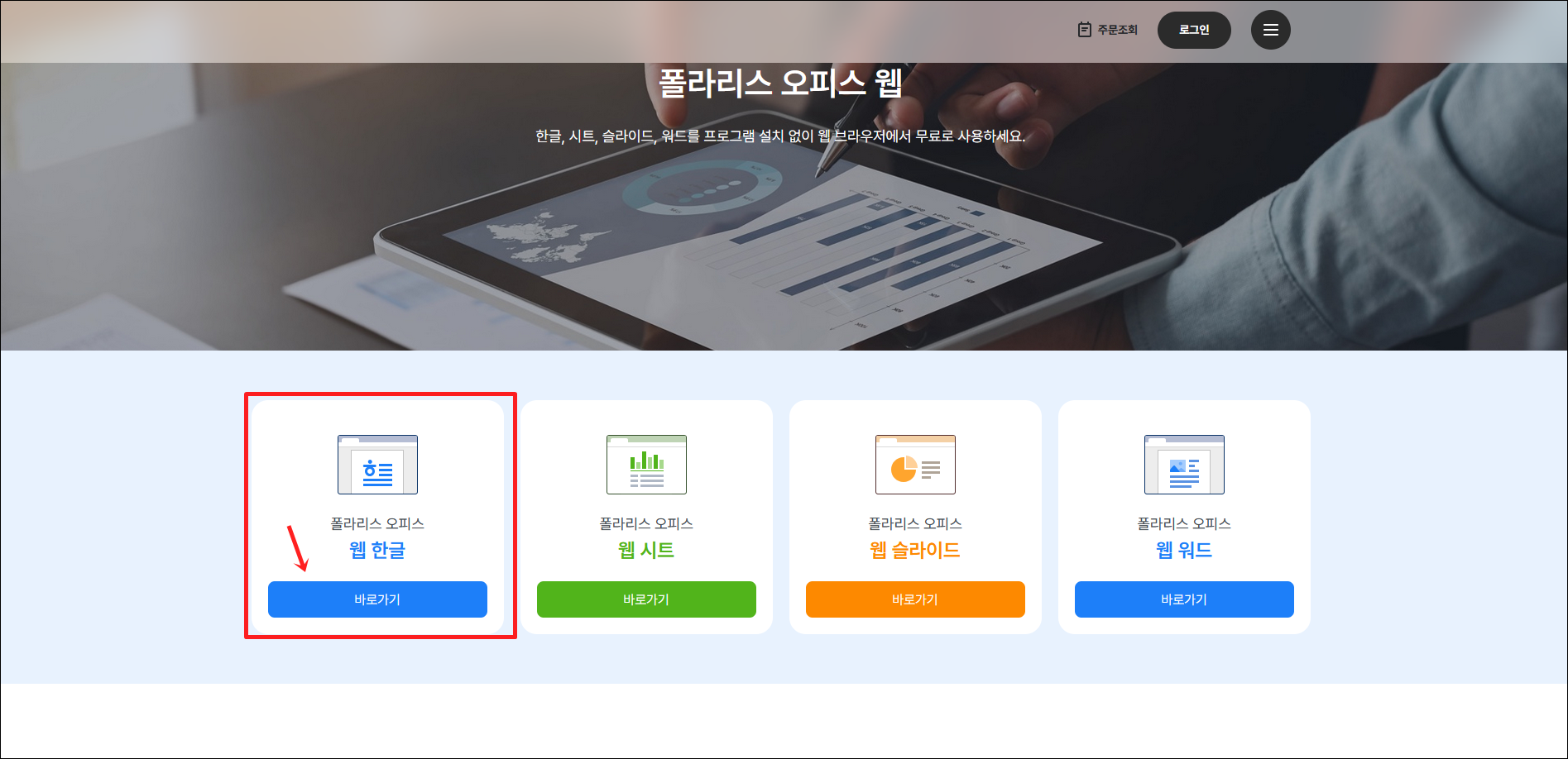 그럼 요렇게 "폴라리스 오피스 웹" 페이지에 나오는데