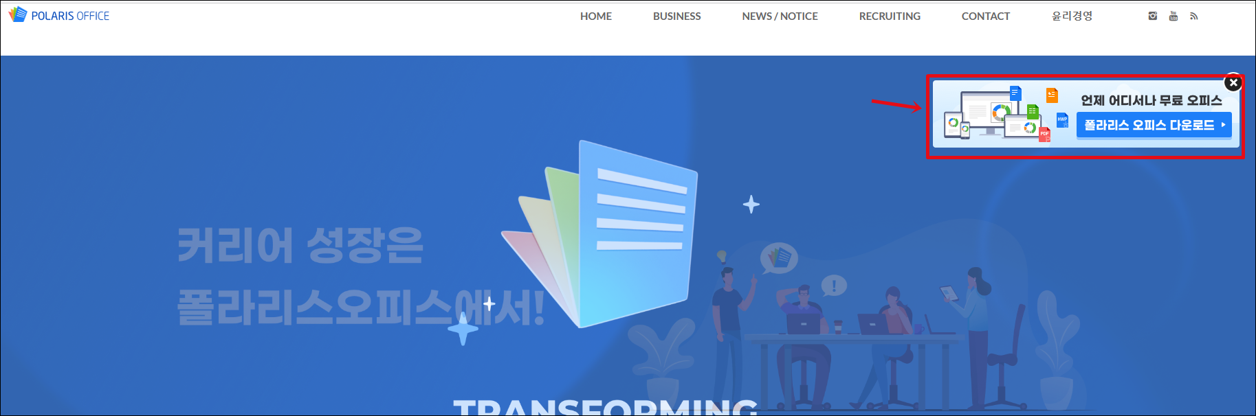 폴라리스 오피스 홈페이지에 접속하면 다음과같은 화면이 나오는데
