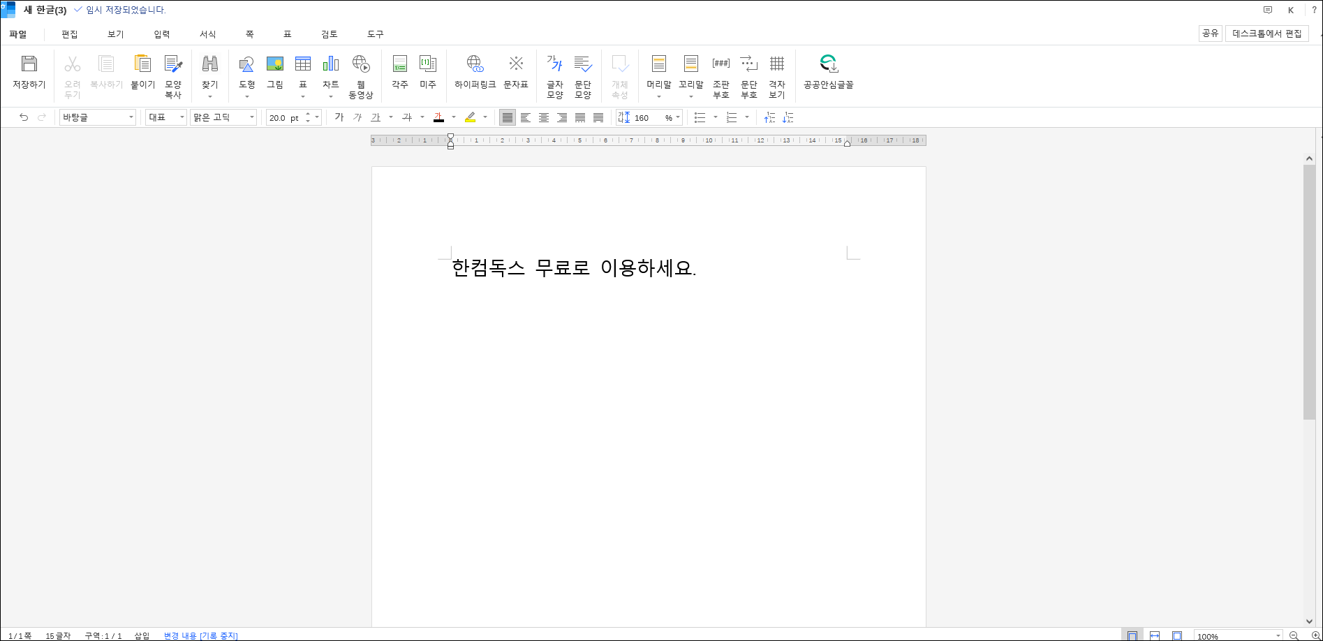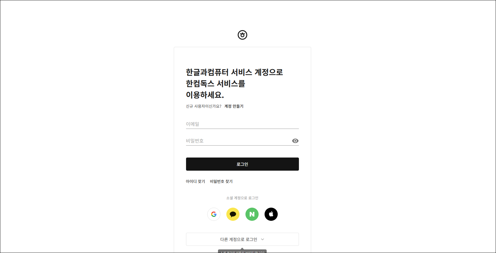 로그인 하면 한컴독스 를 무료로 이용할 수 있답니다..