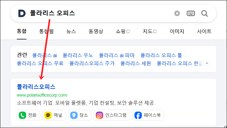 포탈사이트에서 폴라리스 오피스 를 검색하고