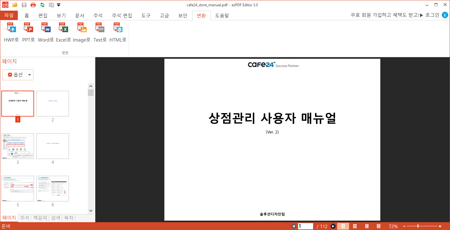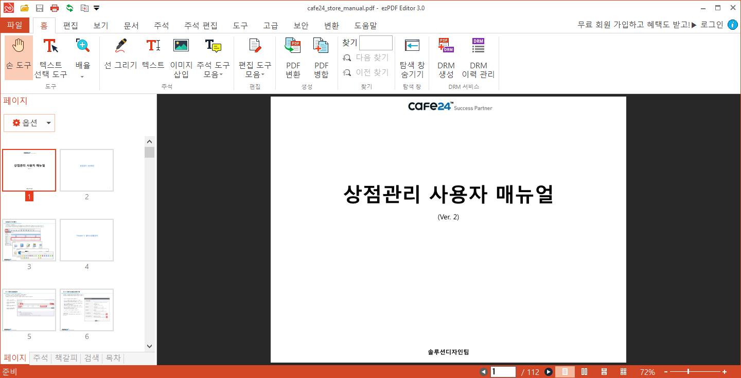 * 페이지 이동, 확대·축소, 회전, 페이지 썸네일 보기 등 다양한 보기 기능을 지원합니다.