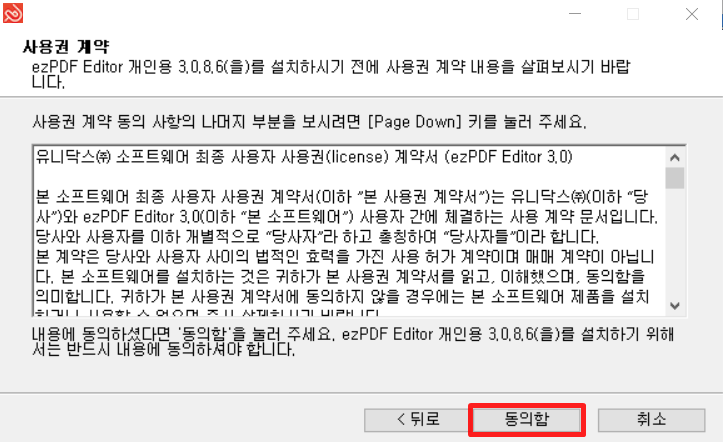 3. 사용권 계약 화면이 나오면