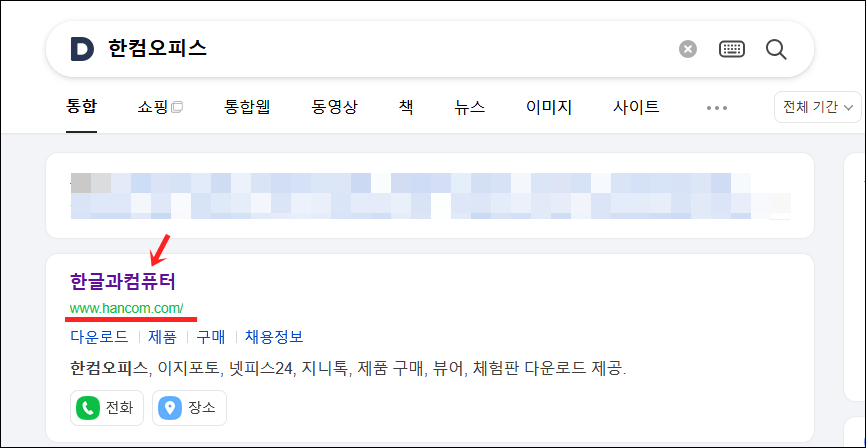 먼저 포털 사이트(다음 또는 네이버)에서 「한컴오피스」를 검색해 주시기 바랍니다.