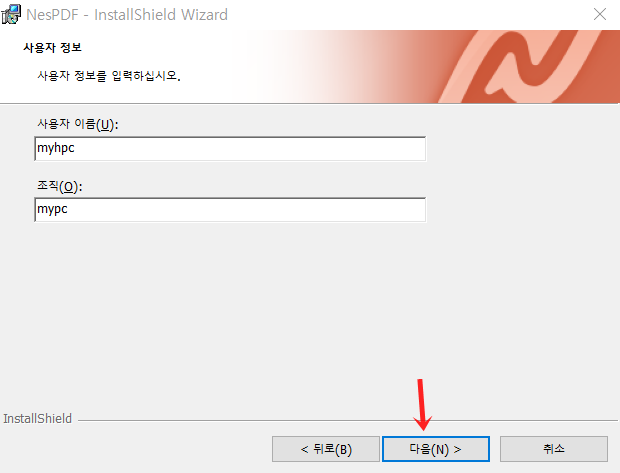 사용자 정보 입력 화면에서는 별도로 수정할 필요 없이 기본 설정 그대로 두고 다음 버튼을 눌러주시면 됩니다.