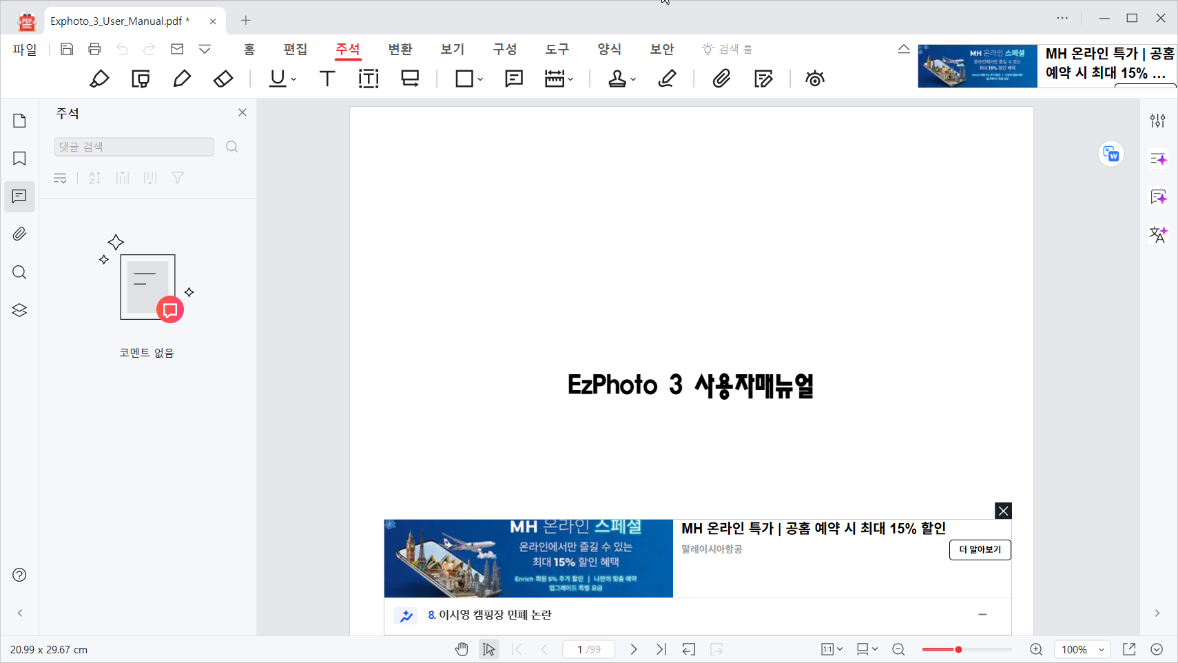 또한 형광펜, 메모, 도형 삽입과 같은 주석 기능을 통해
