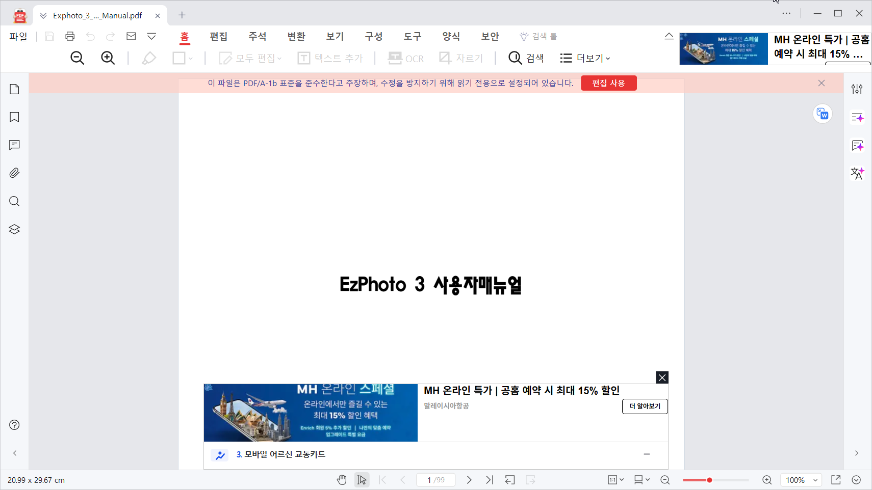 “이 파일은 PDF/A-1b 표준을 준수한다고 주장하여 수정을 방지하기 위해 읽기 전용으로 설정되어 있습니다.”